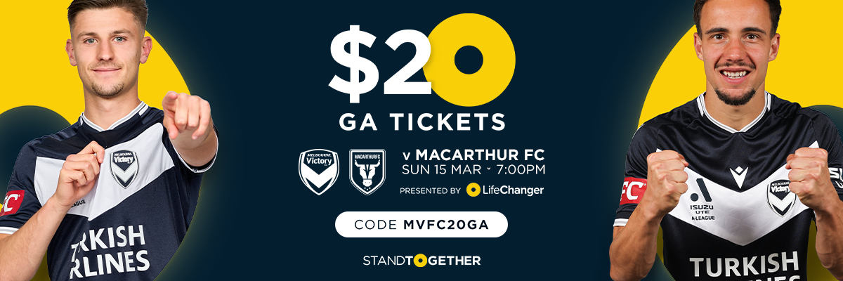 Melbourne Victory welcome Macarthur FC in Round 21 of the Isuzu UTE A-League on Sunday, March 15, kick-off 7pm AEDT.