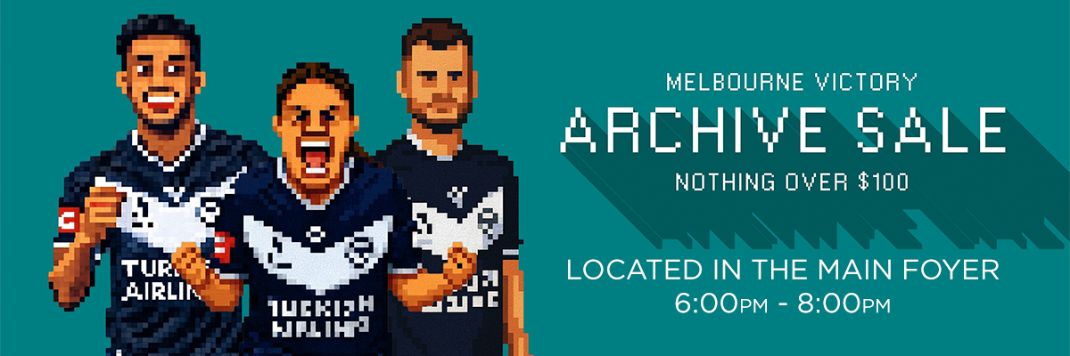 • The archive sale is back, nothing over $100! Stock up on some classic Victory gear before the match, available in the Foyer 👕